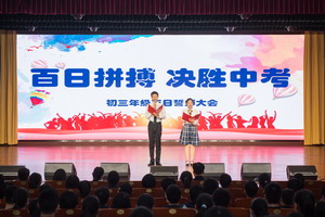 2021年3月23日下午,北京市第八十中学白家庄校区初三年级全体师生在礼堂召开了百日誓师大会。参加此次活动的领导老师有:初中部主管校长骆玉香、教学处主任皮艳芳、孙海山、教育处主任李进、刘颖及初三年级全体老师。
