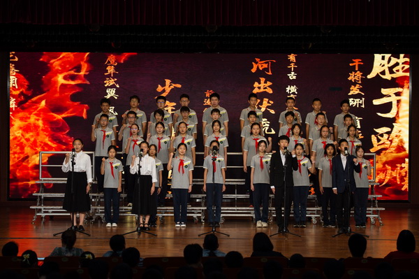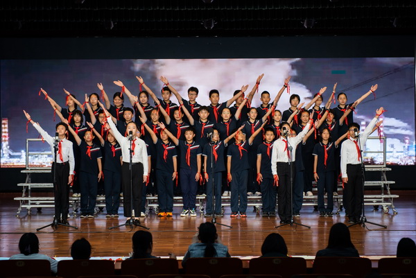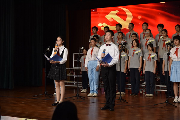 有的作品青春跃动,活力四射,比如初一6班的《少年无畏,逐梦中国》、初一10班的《不负青春,为中国》、初一14班的《中华少年》。同学们以青春澎湃的诵读,诠释出当下时代青少年心中的灿烂画卷,呼唤着每一位同龄人点燃自身心中的爱国热忱。真可谓:青春之歌,响彻校园;青春中国,有你有我。同学们的诵读使得整场演出的爱国氛围更加浓郁,更加热烈。
