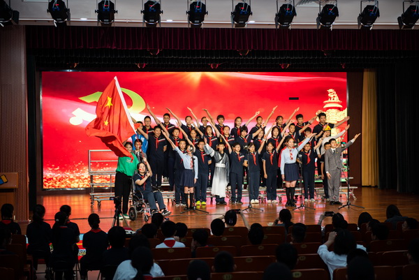 每天埋头学习的我们,总觉得国家这两个字太厚重,它承载了十三亿人民的希望和梦想。作为小小的我,除了做好当下的点滴小事,还要用新时代的方式表达感情。同学们利用下课时间高效排练,老师组织各班同学多次彩排,家长们也积极配合预备服装,在一篇篇经典的作品中,在抑扬顿挫的诵读声里,在激情澎湃的主旋律配乐里,小小的我们,从此深深的住进了两个字:祖国。