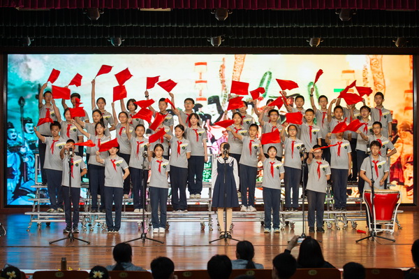 初一年级的同学们年龄虽小,可诵读表现却毫不逊色,可爱的脸庞上洋溢着新时代少年的精神风貌,他们用仍带稚嫩的嗓音吟诵出对祖国母亲深深的热爱。从他们自信的目光中可以看出,伟大中国梦早已根植于他们的内心。这些祖国的花朵一定会在灿烂的阳光下茁壮成长。