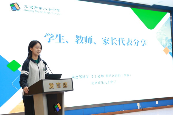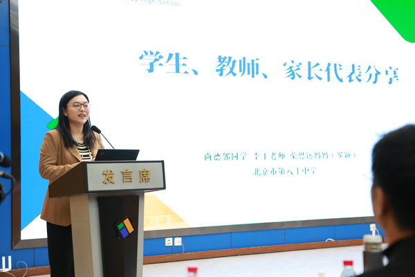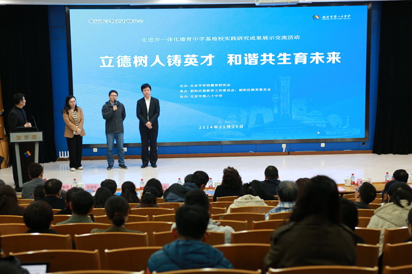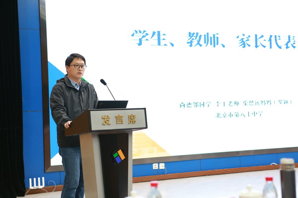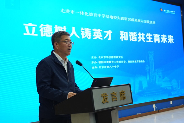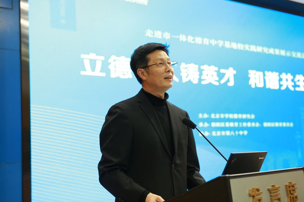主会场由北京市德育研究会副会长戴文胜主持。朝阳区教委副主任徐志辉发表致辞,他对八十中在德育工作方面取得的成绩表示肯定,并对未来的德育工作提出了期望。