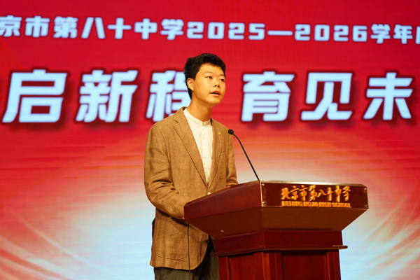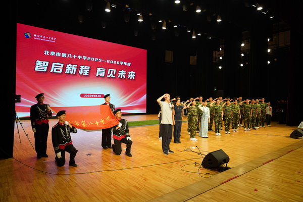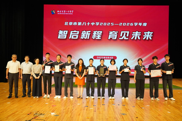 作为教育部中小学人工智能教育基地,八十中始终以“为学生终身发展奠基”为育人初心;恰逢中国人民抗日战争暨世界反法西斯战争胜利80周年,今天的课堂更承载着“以红色铸魂、以科技赋能”的特殊使命。八十中学任炜东校长以精彩的“开学第一课”致辞引发师生思考,阐释如何以小我融入大我、用科技创新写就报国志向。致辞中任校长提到,九三阅兵这一堂深刻的“国家历史课”已将伟大抗战精神化作我们民族的永恒记忆和精神坐标。对每一位学生和教师来讲,爱国绝非一句空洞的口号,而是要把个人奋斗的“小我”,融入民族复兴的“大我”。任校长特别提到,八十中机器人社团获2025年VEX机器人世界锦标赛金奖,赛队成绩获世界第2名,创历史最佳战绩,这就是新时代青年“以知识为盾、以创新为矛”,对“实干兴邦”的青春回应。随后,任校长寄语初一、高一新生,要牢记校徽承载的责任;鼓励初二、高二学生积蓄力量,将知识转化为智慧;勉励初三、高三学生以先辈信念应对挑战,将升学梦与民族未来相连。最后,任校长与八十中全体师生共勉:“愿我们每一位八十中人,都能以红色基因为魂,以科技创新为翼,以理想信念为帆。让‘铭记’成动力,让‘奋斗’成底色,在实现中华民族伟大复兴的壮阔征程中,书写无愧于时代、无愧于祖国的青春华章!”