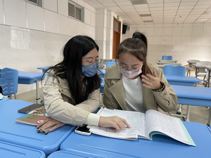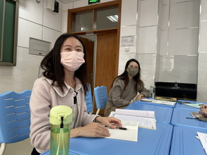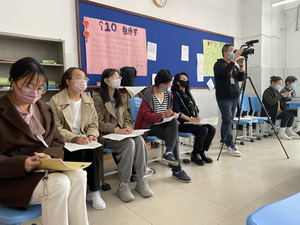 课堂观摩结束后,毛老师、段老师和北校区2022届新教师一同展开研讨。首先,毛老师和段老师分别从小组活动、课堂导入的角度向新教师分享经验。毛老师以本次课堂中两次小组活动为例,为新教师解读了小组活动的目的和方法,并强调了在小组活动中落实新课标理念的重要性。段老师向新教师介绍了课堂导入环节在课堂氛围、内容衔接、障碍清除等方面的作用,并强调了结合生活实际、充分考虑学情等注意事项。随后,新教师们围绕着青年教师研修手册中的评价标准展开小组讨论,并一一分享了听课收获。五位新教师从课堂常规、教学效果、授课风格、备课过程等方面畅谈心得,纷纷表示收获颇丰,并立志向两位青年教师看齐。
