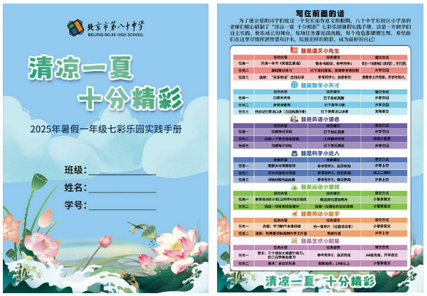暑假前夕,为让孩子们拥有一个充实且有意义的假期,学校老师精心策划并编制了“清凉一夏,十分精彩”七彩乐园暑假实践手册。