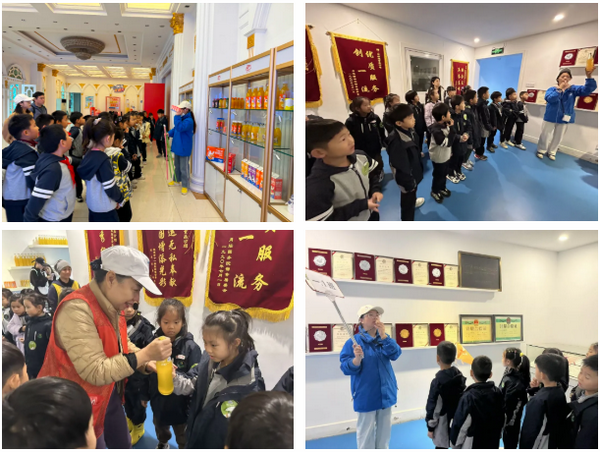 在园区辅导员的引导下,各班分组开展活动。同学们走进百年义利展览馆,一张张照片、一组组数据,生动还原了义利品牌从创立到发展的百年历程。“原来义利已经有这么久的历史了!”,同学们不时发出赞叹,纷纷拿起笔记录下感兴趣的知识点。此次活动,各班分成小组进行“义利品牌传承百年原因探秘”主题研究,负责采访的小记者向工作人员进行了采访,了解到企业“先义后利”的理念正是长盛不衰的秘诀。