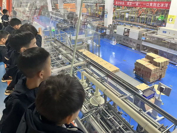 在北冰洋汽水现代生产线参观环节,同学们透过透明玻璃看到自动化生产设备有序运转,从原料调配、灌装密封到贴标装箱,一系列标准化流程一目了然。辅导员详细讲解了汽水生产的食品安全标准与现代工业技术优势,同学们认真倾听、积极提问,直观感受到科技为传统品牌注入的新生机,也对食品安全知识有了更深刻的理解。