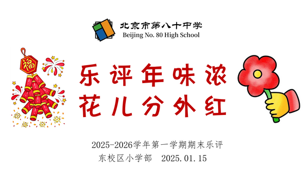 一马当先年来到,花开朵朵报春早。八十中东校区小学部于1月15日组织一二年级学生进行学期乐评,此次乐评以“开心过大年,一起来嗨皮”为学习情境,以“快快乐乐闯关,开开心心成长”为主题,融“情境性、趣味性、实践性、创造性”于一体,为全体学生打造了一场色香味俱全的乐评盛筵。