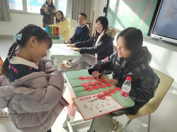 数学学科将学科趣味与新年氛围巧妙相融,以三个智趣闯关活动为主线,让期末乐评洋溢着年味与乐趣。在 “口算糖葫芦” 环节,孩子们在一分钟计时里进行口算,颗颗 “糖葫芦” 串起的是扎实的运算功底;“图形红包雨” 中,孩子们从红火的情景图里辨识长方体、正方体、球体、圆柱体,用清晰的判断解锁 “红包”的不同形状,在观察与分类里玩转空间认知;“拨珠年货站” 里,孩子们数年货、说数的组成、拨计数器珠子,把数的概念与新年备货的热闹场景相联结,让抽象知识变得鲜活且亲切。数学乐评,孩子们在闯关中比拼智慧,在游戏里夯实知识,这既是对数学素养的趣味检验,更是一场浸润着年味的思维启蒙,为孩子们的新年添上了一抹甜蜜的数学底色。