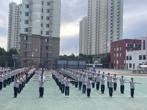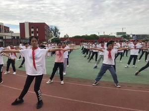 为培养同学们的拼搏进取精神,培养良好作风,在学校的组织下,体育组教师对全体同学进行了体能训练和课间操教学。烈日当头,同学们毫不懈怠,认真做好每一个动作,在汗流浃背中锤炼着自己的意志,充分展现出了八十中学子的良好精神风貌。