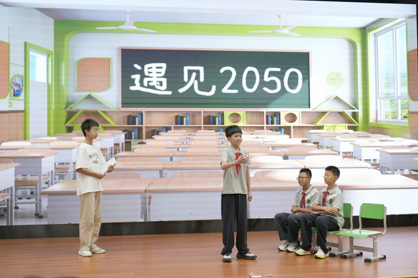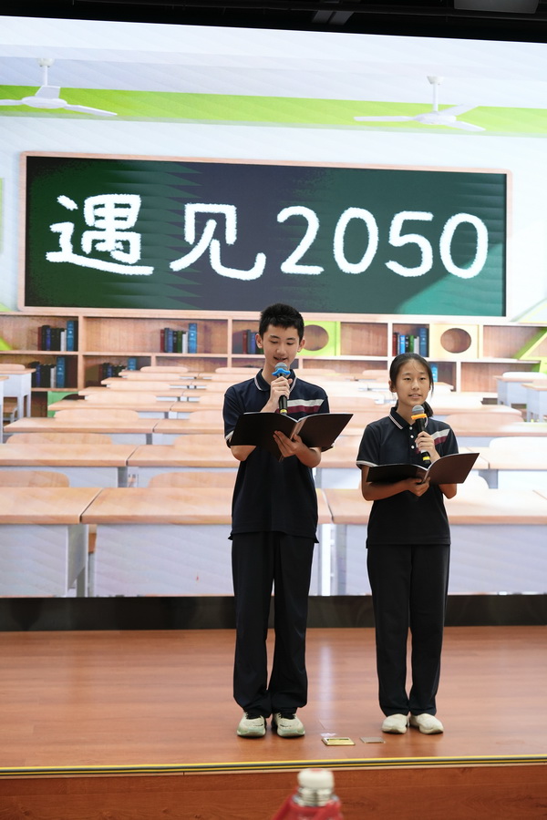 八十中本次比赛的剧目为《遇见2050》,讲述了主角祁安穿越到未来,遇到未来的自己,见识到祖国科技的飞速发展,最终深受启发努力学习的故事。随着故事情节的推动,管家机器人、外卖机器人、环卫机器人、医用机器人、胶囊机器人等多种多样的高科技机器人呈现在观众面前,展现了孩子们丰富的想象力和对未来的美好憧憬。此外,微剧还穿插了师生自制的机器人发展历史视频,充分体现了科技进步的过程,历史站位高远。