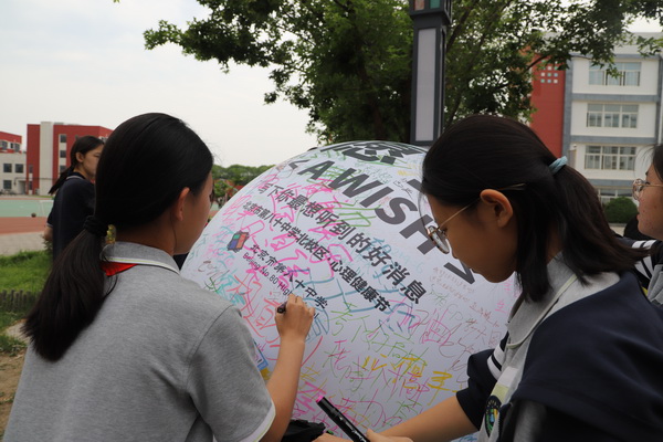 5月23日午后,教学楼前广场成为充满欢声笑语的“心灵乐园”。以“沐光而行”为主题的心理游园会盛大开启。活动入口处设置了5·25心理健康节签名墙,同学们纷纷驻足签名,并留下美好的话语,“勇敢做自己”,“今天也要开心”…… 签名墙成为心灵之旅的美好开始。