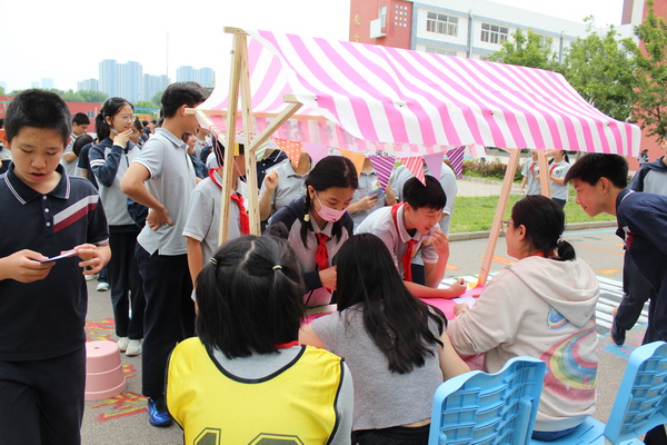 活动打卡处人头攒动:有的同学们在“心愿星球充电站”写下对未来的期许,让彩色球体承载梦想;也有人在“赞语生花树”上留下暖心便签,让赞美的枝叶繁茂生长;在“解忧调色盘”上用画笔释放情绪,让烦恼随色彩流淌;在“幸福能量投掷场”传递沙包,让快乐在互动中蔓延;在“自我闪耀挑战站”大声说出优点,用自信点亮心火;在“秘密树洞盲盒屋”投递困惑,从“答案之书”中寻得指引。