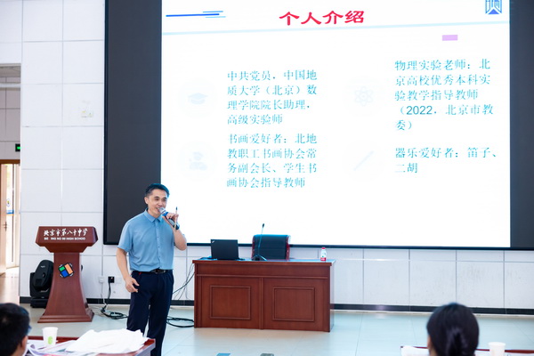 "没想到物理公式能和毛笔书法产生联系!"一位同学在听完这堂特殊的物理课后兴奋地说。2025年9月23日,北京市第八十中学北校区邀请中国地质大学董爱国教授带来《物理老师带您学书画》青少年科普课程,让初二年级全体学生在笔墨丹青中领悟科学真谛。