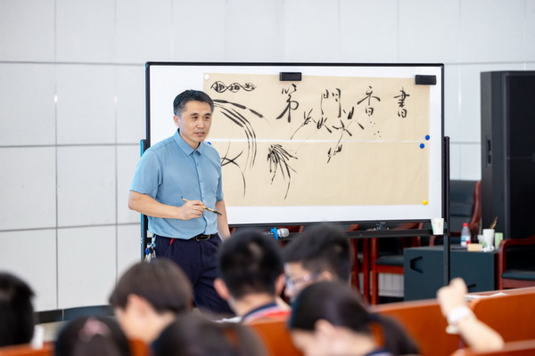 "书画是看得见的国学,物理是摸得着的真理。"董教授在课后访谈中表示。夕阳西下时,阶梯教室里仍有许多学生围着董教授请教。一位同学正尝试用正交实验法调配墨色:"原来控制变量法不仅能做物理实验,还能画出五种墨色!"她的宣纸上,浓淡相间的竹叶正随风摇曳—这是科学思维与传统艺术碰撞出的奇妙火花。