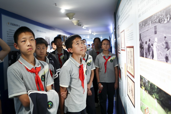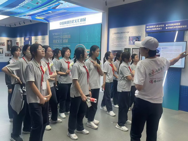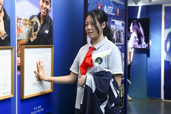 观赛后,同学们走进中网主题展厅。讲解员细致介绍了网球运动的起源与发展、中网赛事的创办历程。从法国宫廷的草地到奥运会的赛场,从手掌击球到现代科技球拍,同学们听得专注,与老师积极互动。没有炫目的全息投影,讲解员用质朴的语言,带着大家开启了一场别样的时光回溯。在过去条件艰苦的岁月里,人们对网球的热爱丝毫不减。没有精良的场地,就找一块相对平整的空地;没有专业的球拍,就用简易的木材自制;没有标准的网球,就想办法用类似的球替代。同学们围在展柜前,看着那些带着岁月痕迹的老式球拍、略显粗糙的网球,仿佛能透过这些物品,看到往昔人们在简陋条件下,依旧执着地挥舞球拍、追逐网球的身影。