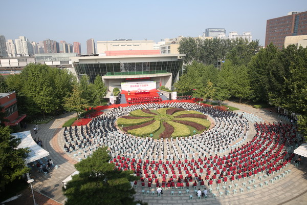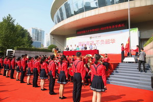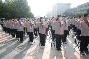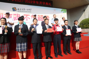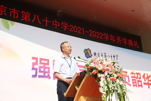 2021年9月1日上午9时北京市第八十中学高一年级新生和北校区初一新生在望京校区大礼堂前的中心广场举行庄严、隆重、热烈的2021—2022学年度开学典礼。
