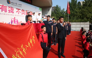 新生入学宣誓庄重而震撼。出校旗、唱校歌,新生代表上台,领导嘉宾为他们佩戴校徽,高二2班贾闻同学上台领誓,全体新生宣誓,励志成为社会中坚、国家栋梁。