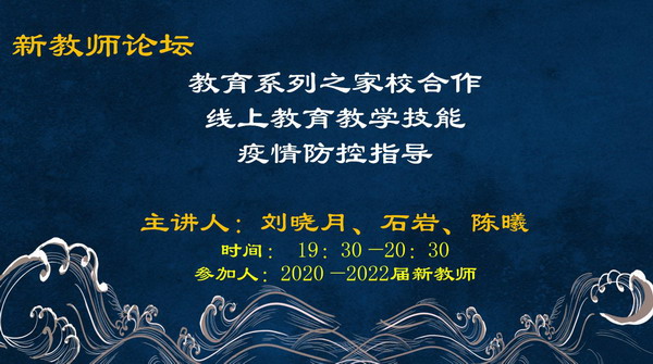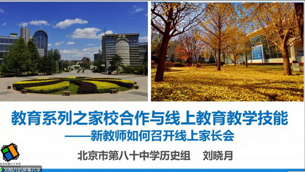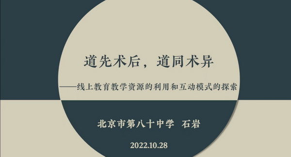 2022年10月28日晚,北京市第八十中学2022-2023学年第九次青年教师论坛以腾讯会议形式举行。在本次论坛中,历史学科青年教师刘晓月、石岩两位老师和八十中首届新教师研修班的班长、高中部教育处副主任陈曦分别就期中考试之后即将召开的家长会、疫情防控背景之下的线上教育教学以及防疫工作做了详细的指导。八十中时芝玫副校长、青年教师发展研修院总导师、研修班负责人徐萍老师也参加了本次论坛。论坛由初中部历史组陶芳老师主持。