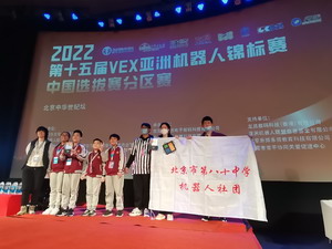 经过为期四天的激烈比拼,北京市第八十中学机器人社团初高中共21名学生,7支参赛队在VEX IQ和VEX VRC两个赛项中获得一等奖7人,二等奖5人,三等奖9人的优异成绩。同时在工程项目评审答辩中获得两项专项奖,其中8223A赛队获得VRC最佳创意奖,10458D赛队获得IQ最佳评审奖。