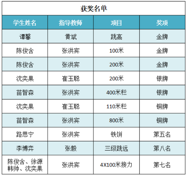 陈俊含同学获得100米金牌