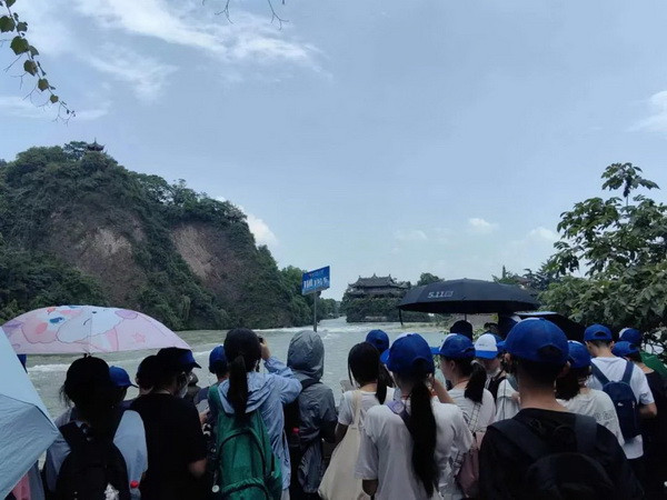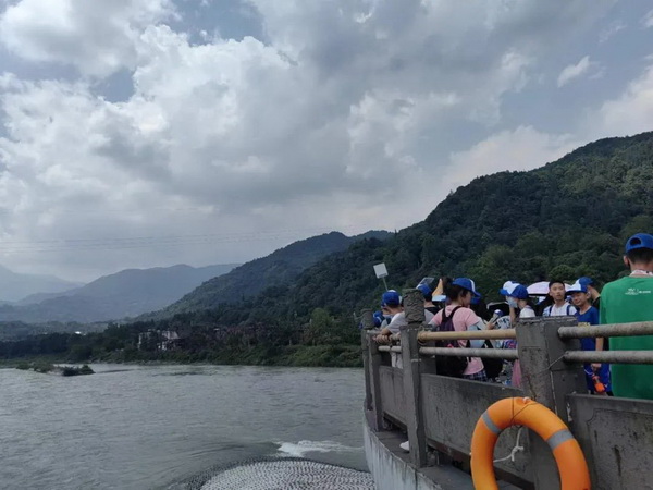 成都之旅第二天,简短的开营仪式后,我们坐车前往都江堰,这是使成都成为天府之国的伟大工程。都江堰主要由鱼嘴分水堤、飞沙堰溢洪道和宝瓶口进水口三大部分构成。看到湍急的水流在李冰精妙的设计下分成了外江和内江,分别用于排洪和引水灌溉,古人的智慧实在令人叹服。