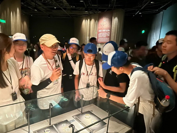 研学第五天,我们来到了金沙遗址博物馆。走进遗迹馆,我们近距离观察考古学家划分的探方和几千年前的遗迹,仿佛与考古专家一同挖掘历史的奥秘。我们观赏到了久负盛名的太阳神鸟金饰和大金面具。其中,太阳神鸟金饰厚度仅0.02厘米,采用镂空的方式表现图案,有着丰富的历史文化内涵和艺术欣赏价值。