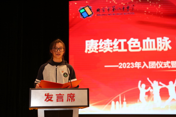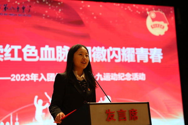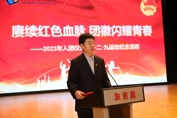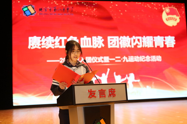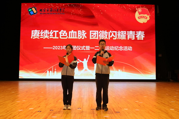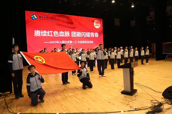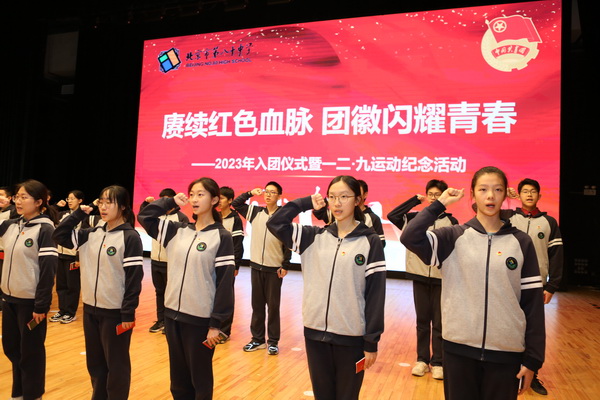 2023年12月8日,为深入学习贯彻党的二十大精神,激发广大团员青年爱党爱国热情,增强共青团员的光荣感、责任感和使命感,进一步提升共青团凝聚力和吸引力,同时为了纪念在“一二·九”运动中为反抗帝国主义、保卫祖国领土完整的青年学生,并学习继承其优秀品质,传承红色精神和红色血脉,北京市第八十中学在礼堂举行了隆重且严肃的入团仪式暨“一二·九”运动纪念活动。八十中学党委李军书记、任炜东校长、教师代表及高一高二全体团员出席了活动。本次入团仪式既代表团组织对新团员的接纳和优秀团员的表彰,也对每一位团员进行了思想教育和精神熏陶。