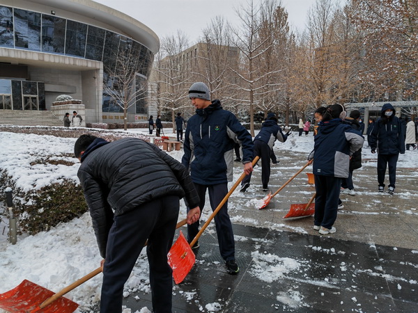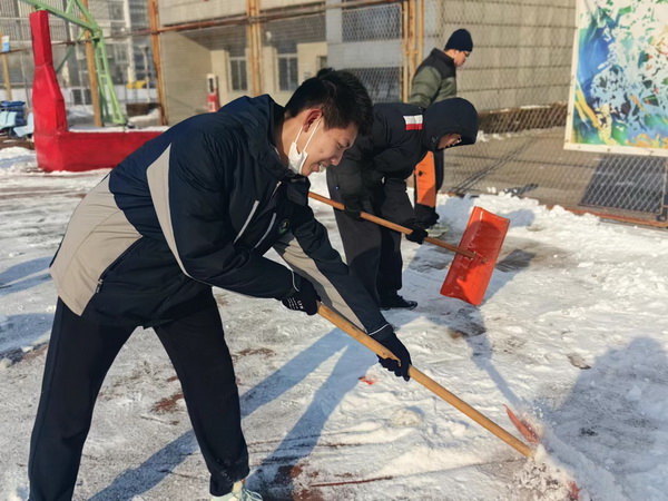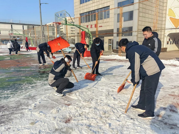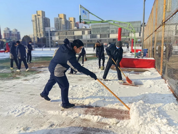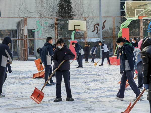 12月中旬,北京普降大到暴雪,校园内一片白雪皑皑,给美丽的校园增添了别样的风景,但同时也给在校园内活动的师生带来了一定的安全隐患。为了创造安全舒适的校园环境,在教育处、总务处的组织下,高一年级1、2、8班,高二年级4、5、6同学积极报名,利用课间休息时间,主动拿起扫雪铲加入到铲冰扫雪的队伍中来,经过几天的持续清理,学校又恢复了往日的景象。