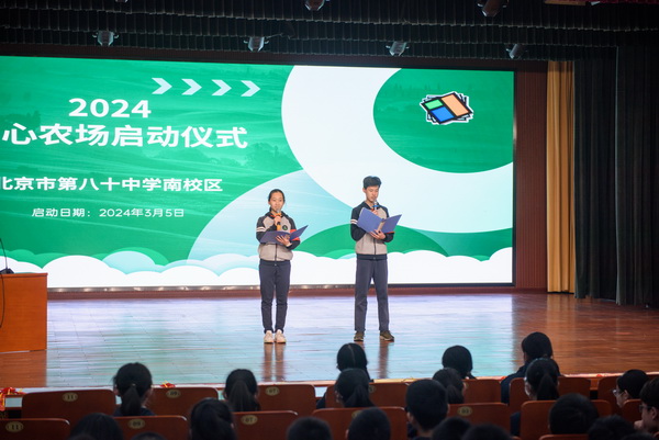 2024年3月5日中午,北京市第八十中学南校区初一年级和初二年级共14个教学班的师生齐聚礼堂,共同见证了“开心农场”劳动实践项目的启动仪式及专家讲座。这一项目旨在通过亲身体验种植,增强学生们的劳动意识和实践能力,同时促进学生对自然生态的了解和兴趣。
