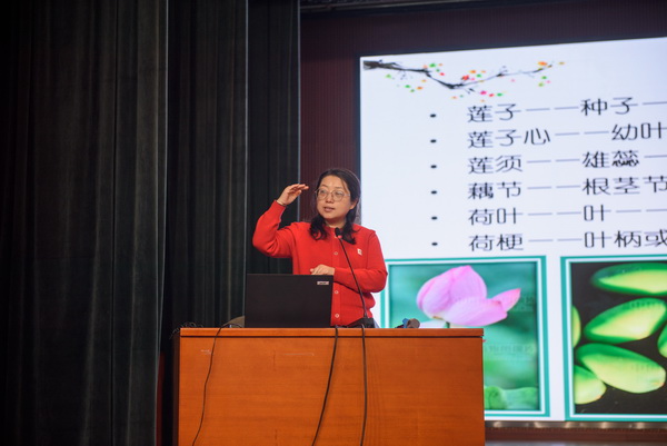 无论是神农尝百草,还是李时珍著医术,对中医药的发掘都起源于人们延续生命的渴求,传承探索世间药草的无限魅力。珍珠、铁皮石斛、灵芝……这些耳熟能详的名字,伴随着千年神话代代相传,与其缔造者一起见证人间冷暖,岁月迁徙。从上古走来,今天在八十中了解了古老的药用植物,见证了18000多种植物背后的努力。平日中素来多见的荷花莲蓬却是功效甚多的药材,更是有着“莲中六君子”的美名,莲子可清热解毒,花蕊可凉血止血,就连深扎淤泥中的根也可以清肝去火。在这场讲座之中,我们仿佛透过身边的百般植物走进充满奥秘的药草大森林,森罗万象,交相呼应,看见了先辈钻研草药的身影。还有许多被弄混的:形相近性相远的槐兄弟,总被误认为路边花的“野菊”。最后,在庄严的启动仪式上我十分赞同刘主任的一段话:植物长成什么样子有关于种子,但更多的是后天的浇灌,雨露的浇灌,狂风的磨砺。种植与学科相融合,与心灵相沟通,与自然问好,相互尊重。诸药所生,皆有境界,本草的灵性得源孕育之境。道地药材,地道炮制,这是一场最好的较量,是一次生命与生命的对谈,更是至臻至善的人生境界。