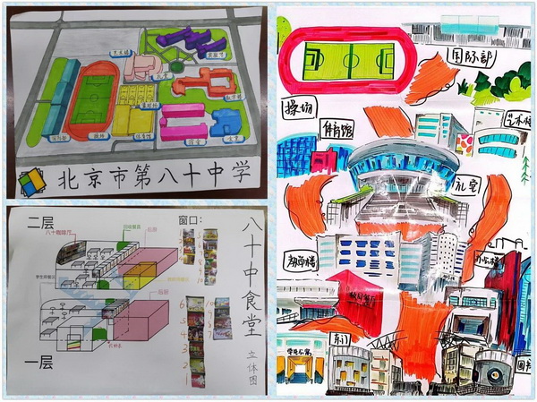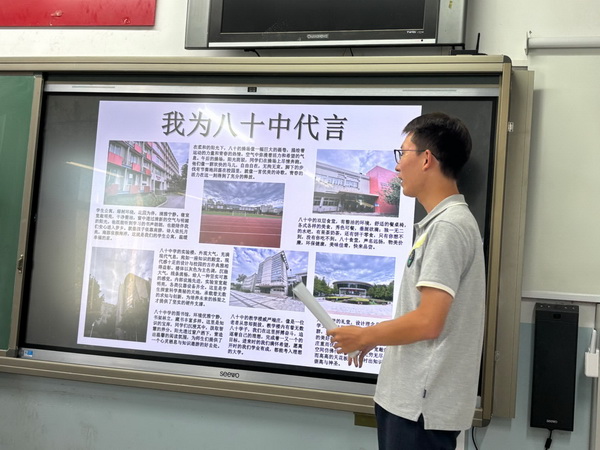 在入学教育的结尾,各班同学精心制作了 “我为八十中代言”文化产品,并展示了各班同学手绘的校园地图。一张张青春的面庞仿佛正在向校园呐喊:八十中学,我来了!