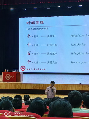 面对崭新的高中生活,职业生涯规划和时间管理技能的学习显得尤为重要。为此,学校邀请了“职慧”公益组织的两位专业讲师,为高一全体同学带来了职业生涯规划与时间管理的专题讲座。在职业生涯规划讲座中,主讲老师通过生动的案例和实用的方法,引导同学们通过自我探索,了解自己的兴趣、能力和价值观,更早且更好地为未来的职业道路做准备;在时间管理讲座中,主讲老师通过四象限法则对事情轻重缓急进行分类,帮助学生学会优先级排序和避免拖延。同学们也认识到只有学会合理安排时间,才能真正提高学习效率和生活质量。两场讲座让同学们受益匪浅,为他们未来的学习和生活提供了有力的支持。