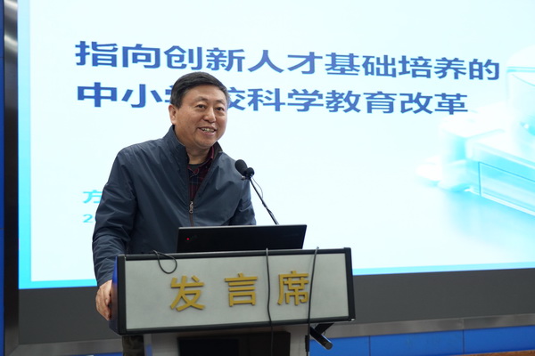 北京开放大学党委书记方中雄教授是国内最早提出创新人才基础培养概念的学者。方教授在会上做了题为《指向创新人才基础培养的中小学校科学教育改革》的引领报告,提出以创新人才基础培养统领中小学科学教育目标和任务。报告就创新人才基础培养的定位、内涵、对象、培养基本原则等多个方面进行了详尽的阐释,并对当下创新教育培养的四种“误区”的本质和根源进行了深刻剖析,提出了学校为主、课堂为主、学科为主、教师为主的“四个为主”的培养原则。方教授的引领报告为基础教育阶段面向全体学生、基于课堂教学、融合知识学习的创新素养培养指明了方向。