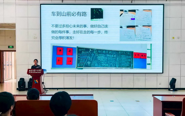 紧接着,曾带领上届初三毕业班的冯琳琳老师登场。她以“厚积薄发,你我皆是黑马”为主题,通过展示上一届学生几次大考的成绩对比数据,生动诠释了“书山有路勤为径,学海无涯苦作舟”的真谛,让同学们深刻认识到初三这一年的重要性与紧迫性。她的话语温暖而坚定,为学子们注入了直面挑战的勇气,更坚定了大家冲刺中考的信心。