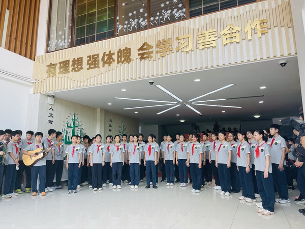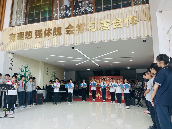 随后,初二年级的同学们带来了歌曲《稻香》。熟悉的旋律响起,瞬间将大家带回了记忆中那个纯真、美好的校园。同学们用清澈的歌声,表达了对老师们无私支持与默默守护的感激。正如他们所说,校园就像一个温暖的家,希望大家无论走多远,都能记得“回家”,回到最初的美好,回到老师的身旁。