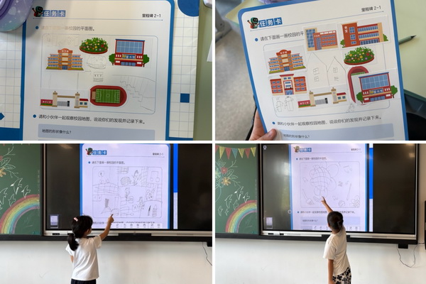在8月底的《刚刚上小学》课程中,集团东校区小学部、北皋分校、康营分校、嘉源分校、睿志分校等校区的老师们没有急于翻开课本,而是设计了一场大型校园寻宝游戏,包含了五大沉浸式项目:“校园里面都有谁?”“我的校园什么样?”……
