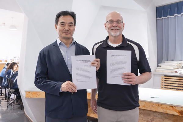 喻书记亲切和师生对话,为远道而来的客人介绍八十中学的育人理念并和师生合影。廖克伟副校长和美方学校代表、K-12 音乐艺术总监 Jeffrey Wilson 先生分享彼此学校特色和优势等,并签署合作备忘录。