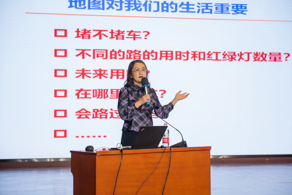 雷老师以使用电子地图导航的应用场景开场,指出地图在当代社会对人们生活的重要性,而地图作为人类寻找资源的必备钥匙,其实由来已久。随后雷老师以航海史的关键事件为线索,向同学们介绍了航海家们借助地图不断地探索世界,也在探索世界的过程中完善地图的历程。从4500年前最古老的地图诞生,地图不断演化发展至今。