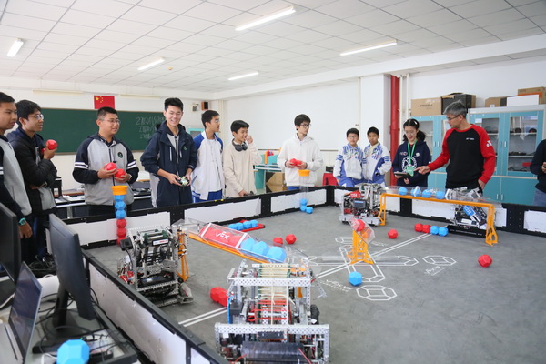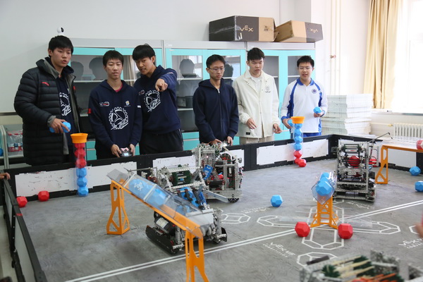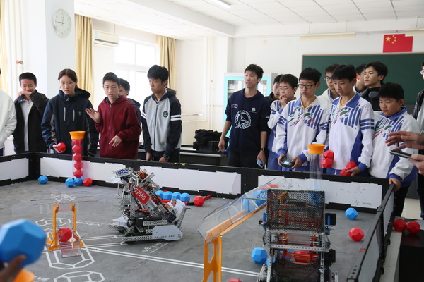 高中队战场竞争更为激烈、技术要求更为严格,团队成员所设计的机器人结构更复杂,自动化程度更高,集成了精密的机械传动与先进的传感控制系统。他们的备赛过程从概念设计、计算机辅助分析到精密加工与算法优化,均由学生主导完成。在赛场上,他们不仅是技术的执行者,更是洞察全局的战略家,能够根据瞬息万变的赛况及时调整战术,充分的锻炼了学生的创新精神、领导力与综合素养。