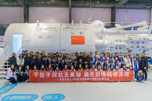 2025年10月28日,北京市第八十中学南校区初一年级全体同学与河南寨中学的同学们怀着好奇与期待,走进锦绣航天科普教育基地,开启了一场意义非凡的综合教育实践活动。本次活动内容丰富多彩,涵盖航天知识学习、国旗宣誓、教室火灾逃生、极端天气应对、地震小屋体验、高铁安全、飞机安全与逃生、公交安全、心肺复苏及窒息急救等多个实用模块,为同学们搭建起沉浸式安全教育平台。
