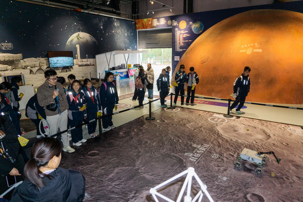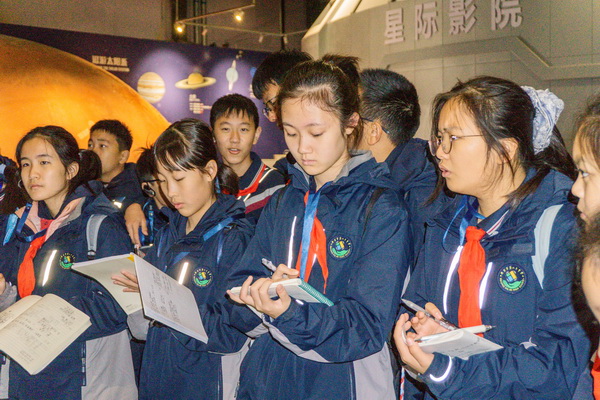 最后,同学们去参观了航天探索馆。刚入馆内,巨大的火箭模型映入眼帘,旁边的飞机模型直指天际,仿佛下一秒就要冲向云层。在讲解员的带领下,同学们参观了科普区。在馆内,长征十号火箭的模型赫然矗立,修长的剑体和精细的结构让同学们直观感受到中国航天工程的伟大和自豪;同学们还参与了航天知识问答和模拟操作活动,在操控台前操控月球车夹取物体时,才明白每一次航天任务的成功都离不开无数航天人在地面上的反复演练与精密计算; 墙上的航天发展史图文并茂,从神舟飞船到嫦娥探月,从天宫空间站到火星探测器,每一个里程碑都让同学们热血沸腾。展柜里的种子样品与航天空间舱中的各种装置和设备,让同学们近距离感受到了航天科技的神奇与魅力。