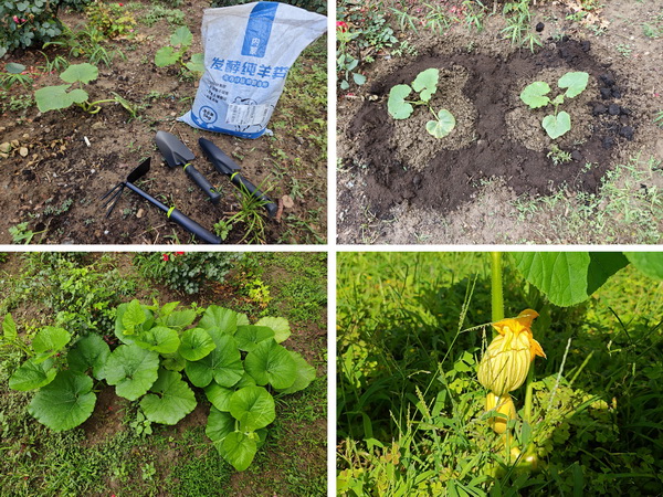 5月10日,巨型南瓜的种子被师生们小心种下,此后便开始每天观察种子的变化,耐心等待生命的萌发。三天后,嫩绿的芽尖破土而出。为了让瓜苗更好地适应室外环境,南瓜苗被转移到室外进行为期数日的练苗。当瓜苗长势稳定后,三株健壮的南瓜苗被小心翼翼地移栽到实验楼前的空地上,正式扎根校园沃土。