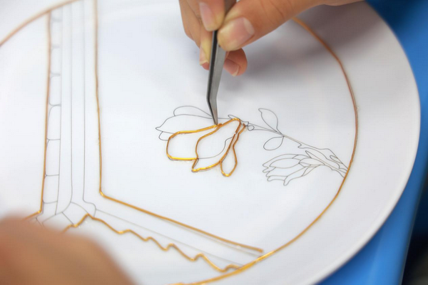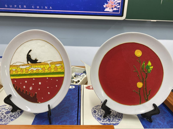 被誉为“燕京八绝”之一的景泰蓝掐丝珐琅,在同学们手中褪去了“皇家贵气”,变得亲切可感。纤细的铜丝在模板上几经弯曲、粘贴,填充釉料时的每一个动作都格外小心翼翼。当斑斓色彩在铜丝勾勒的轮廓中缓缓绽放,同学们的眼中瞬间盈满成就感:“原来这么精美的工艺,我们也能做出雏形!”