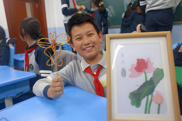 中国结的绳结缠绕、太平燕的吉祥寓意、龙凤画的恢弘大气、木贴画的纹理拼接,每一个非遗项目前都围满了驻足学习的同学。大家或认真跟随老师研习技法,或相互协作完成作品,或兴奋地展示自己的“非遗成果”,一张张灿烂笑脸与传统技艺相映成趣,构成了校园里最动人的风景。
