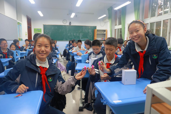 2025年11月7日下午,细密雨丝轻拂北京市第八十中学南校区校园。北京市非遗工作人员走进校园,为初一年级同学们带来的“传统文化进校园”主题活动,让同学们亲手触摸非遗技艺的温度,沉浸式解锁传统文化的魅力,更让纯粹的快乐与文化的厚重在校园里交融绽放。