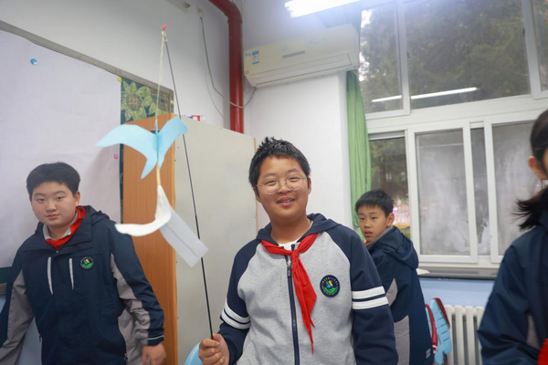 风筝课程则藏满巧思与智慧。非遗传承人吴老师带来了珍藏的传统风筝供大家观赏,更手把手带着同学们解锁风筝制作的门道,让知识与哲理在实践中自然流淌。“古人做风筝,竹篾要选三年以上的毛竹,这样既有韧性又轻便。”吴老师一边示范竹篾搭骨、糊纸描图的技法,一边讲解其中的学问。同学们凝神效仿,细细勾勒,笔下的风筝渐渐褪去平面的单薄,焕发出灵动生气。