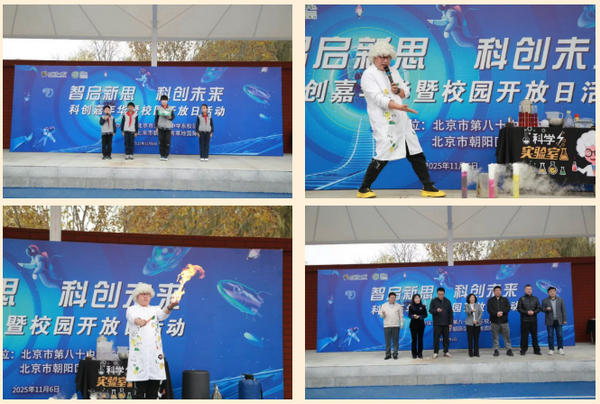 为深入贯彻北京市“科学教育二十条”精神,11月6日八十中学东校区小学部举办了“智启新思 科创未来”科创嘉年华暨校园开放日活动。孙河乡社区办副主任尹燕娟、景福苑社区党委书记薛飞、法制副校长周赟,以及全校师生家长共同参与此次活动。活动以人工智能与科创实践为主线,融合跨学科课程、沉浸式体验与成果展示,全面展现了小学部在科学教育、工程思维与创新素养培育方面的系统探索与实践成果。