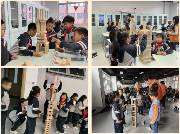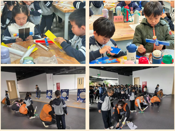 在“科创素养筑基课程”环节,课程以项目式学习方式根据不同年级学生的认知特点与发展需求,设计了不同的主题课程:一年级《气火箭》学生探索空气动力与航天原理;二年级《木塔搭建》锻炼学生空间思维与团队协作,引导学生经历“设计—制作—测试—优化”的完整工程闭环。课程不仅注重知识传递,更强调在真实问题中培养学生的系统思维与创新执行力。