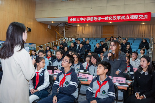 参加全国大中小学思政课一体化活动,我收获特别多。课堂上,我们围绕“构建人类命运共同体”,从双奥之城的故事聊到文物里的文明传承,还用AI技术探究文物背后的文化内涵。不同学段的学习视角相互碰撞,让我不仅看懂了文物里的中国文化,更明白了中国的大国担当。这次一体化思政课不再是枯燥的理论,而是让我真切感受到,我们青少年也能成为传播中国声音、践行人类命运共同体理念的小小参与者。
