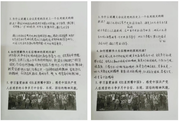 步入展厅内,时光仿若回溯。在“长征主题”展区,那双磨破鞋底的草鞋,让同学们屏息凝神。棉布的破洞是岁月的低语,引我们遥想雪山草地间,先辈们深一脚浅一脚的坚毅步履。玻璃展柜后的长征路线图蜿蜒如脉,我们忽然读懂:这条曲线不仅串联起瑞金与延安的地理坐标,更在精神维度上,将百年前的奋斗者与今日的我们紧紧相连。